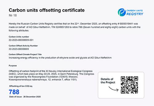 The Nevsky International Ecological Congress achieved carbon neutrality for the first time in 2025. SIBUR provided the Roscongress Foundation with 788 carbon credits for this purpose.